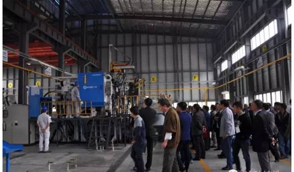 參會代表考察公司新建設的“智能化輕合金成型技術研究及產(chǎn)品開發(fā)平臺”
