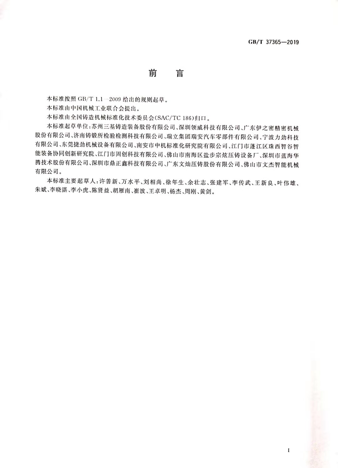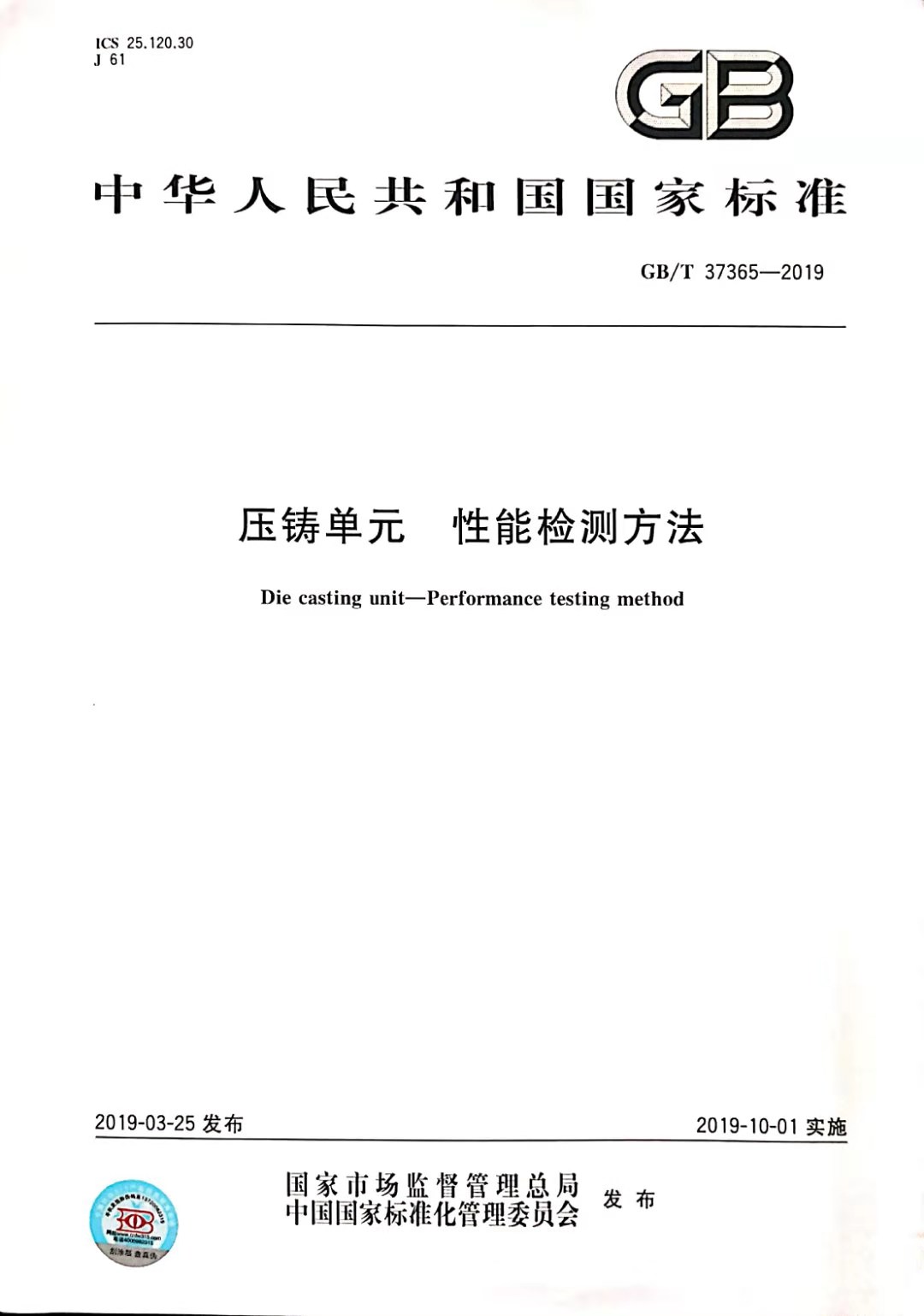 由公司建議立項(xiàng)并主持制定的國家標(biāo)準(zhǔn)《壓鑄單元-性能檢測方法》于2019年3月25日正式發(fā)布,于2019年10月日起正式實(shí)施。該標(biāo)準(zhǔn)在壓鑄機(jī)標(biāo)準(zhǔn)體系中是一個非常核心的標(biāo)準(zhǔn),標(biāo)準(zhǔn)的執(zhí)行將對國內(nèi)壓鑄機(jī)的研發(fā)制造水平提升有著重要的促進(jìn)作用。