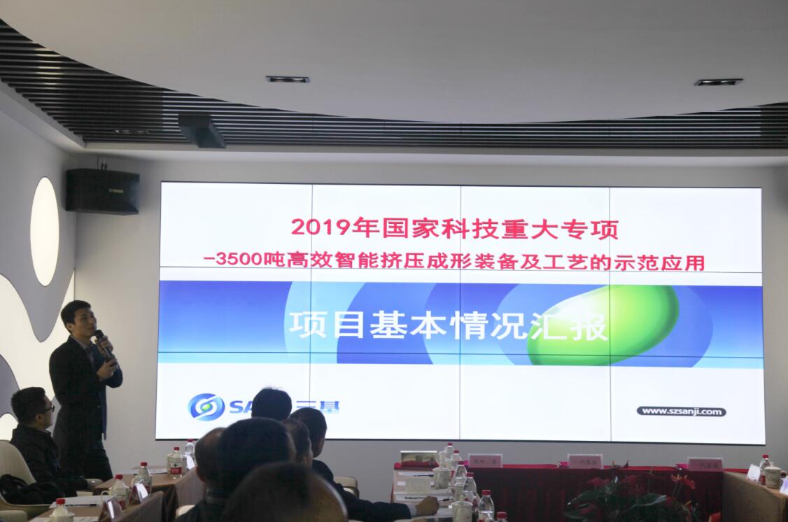 會(huì)議第二個(gè)議程,蘇州三基代表匯報(bào)了中國(guó)一汽和蘇州三基的合作情況以及2019年國(guó)家科技重大專項(xiàng)-3500噸高效智能擠壓成形裝備及工藝的示范應(yīng)用項(xiàng)目的基本情況。