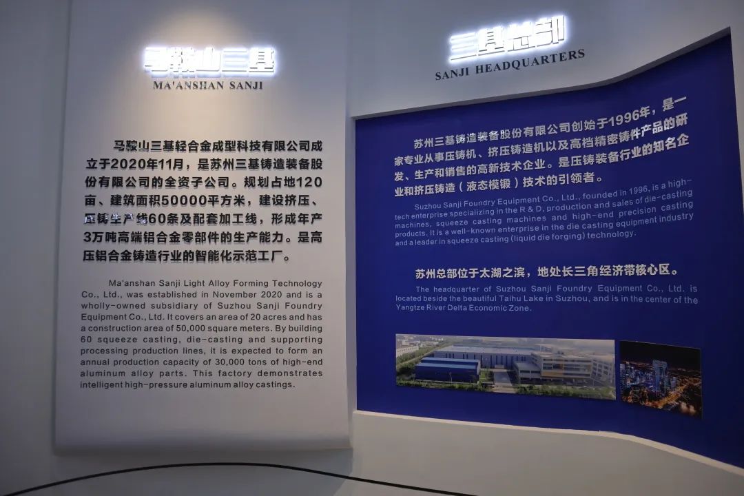 年會(huì)第三天共計(jì)160多名代表參觀了馬鞍山三基輕合金成型科技有限公司現(xiàn)場(chǎng)。馬鞍山三基輕合金成型科技有限公司成立于2020年,是蘇州三基鑄造裝備股份有限公司的全資子公司,具有年產(chǎn)3萬(wàn)噸高端鋁合金零部件的生產(chǎn)能力,是高壓鋁合金鑄造行業(yè)的智能化示范工廠