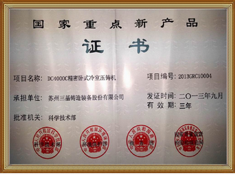 7我司自主研制的“DC4000C精密臥式冷室壓鑄機(jī)”獲得了國(guó)家重點(diǎn)新產(chǎn)品計(jì)劃的立項(xiàng)。這是暨“SCH-350A臥式擠壓鑄造機(jī)”獲得國(guó)家重點(diǎn)新產(chǎn)品技術(shù)立項(xiàng)之后的第二個(gè)產(chǎn)品獲得此項(xiàng)目的立項(xiàng)。