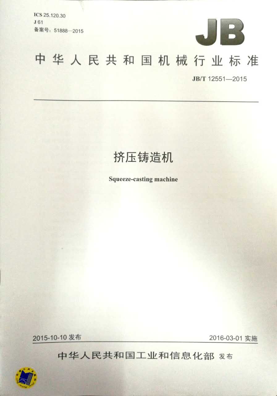 蘇州三基建議的《擠壓鑄造機》行業(yè)標準由2011年獲得國家工信部立項,該標準由蘇州三基牽頭主持并聯合哈爾濱吉星工程機械有限公司、中國某科學研究院寧波分院、浙江萬豐科技開發(fā)有限公司等單位,歷經5年的努力,該標準完成制定并于2016年3月1日獲得國家工信部正式發(fā)布和實施。